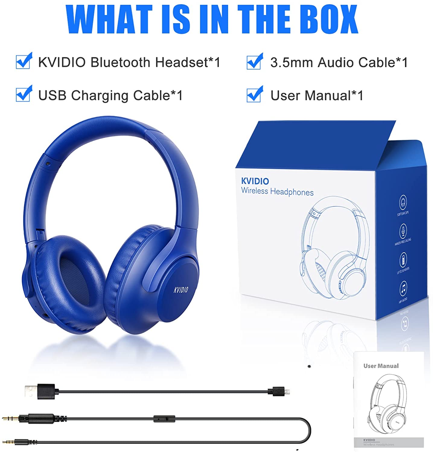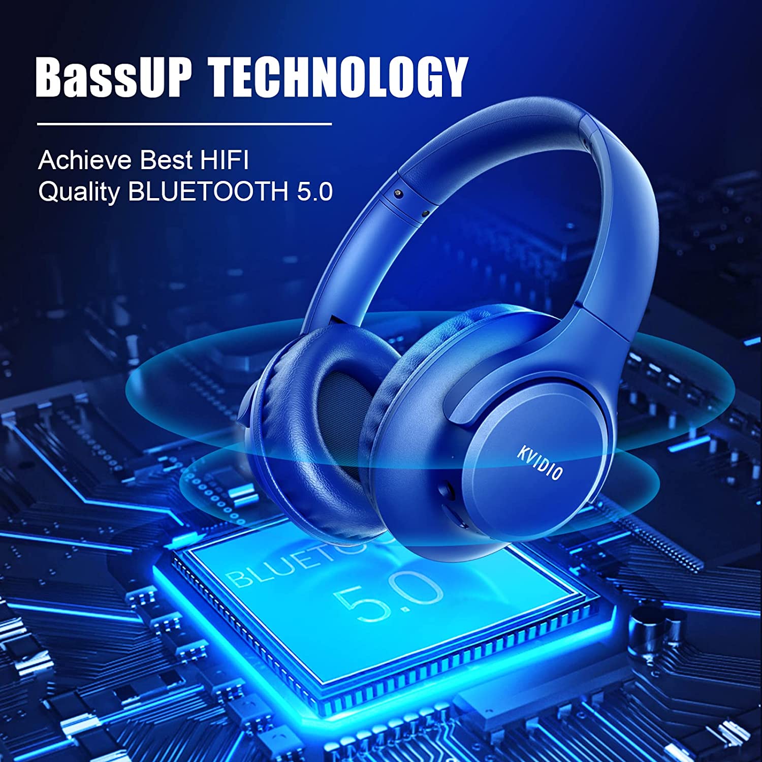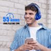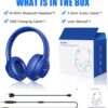 Bluetooth Headphones Over Ear,KVIDIO 55 Hours Playtime Wireless Headphones with Microphone,Foldable Lightweight Headset with Deep Bass,HiFi Stereo Sound for Travel Work Laptop PC Cellphone (Blue)
