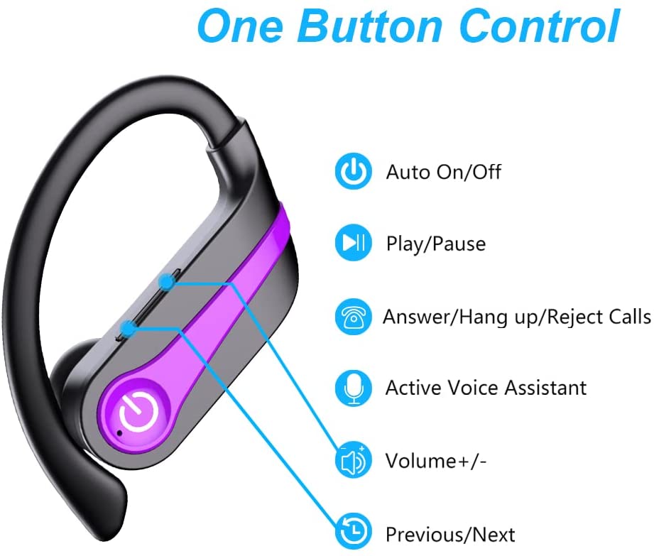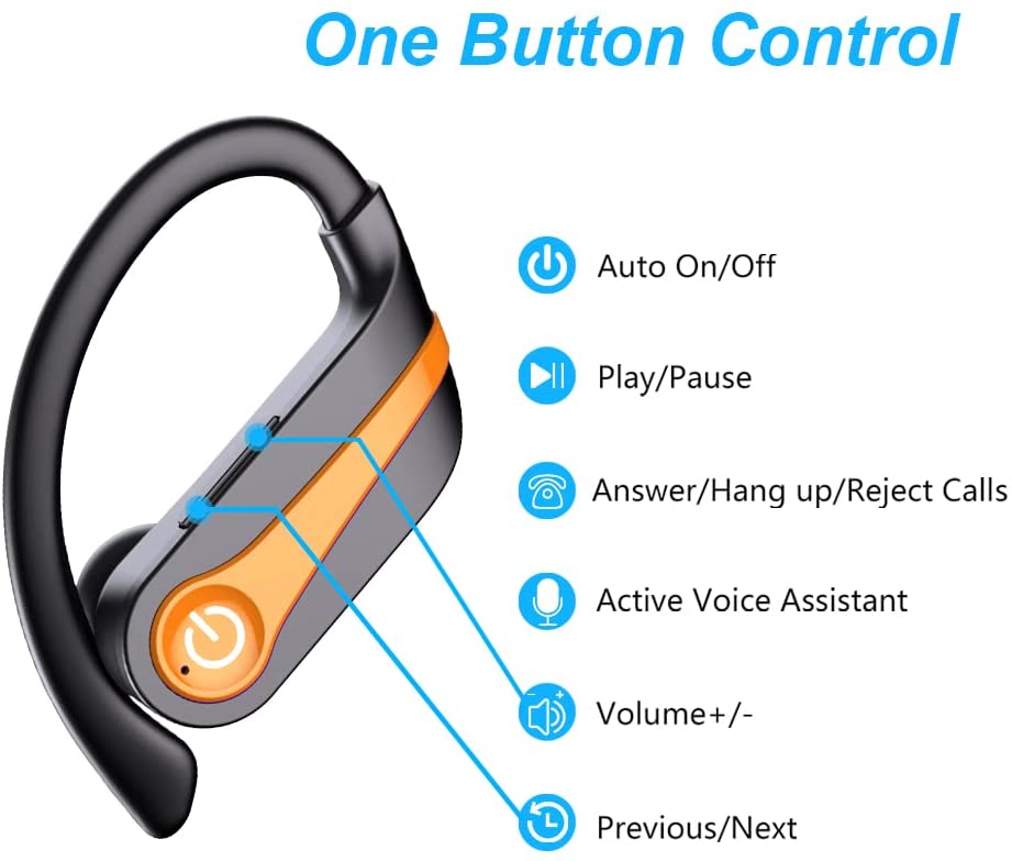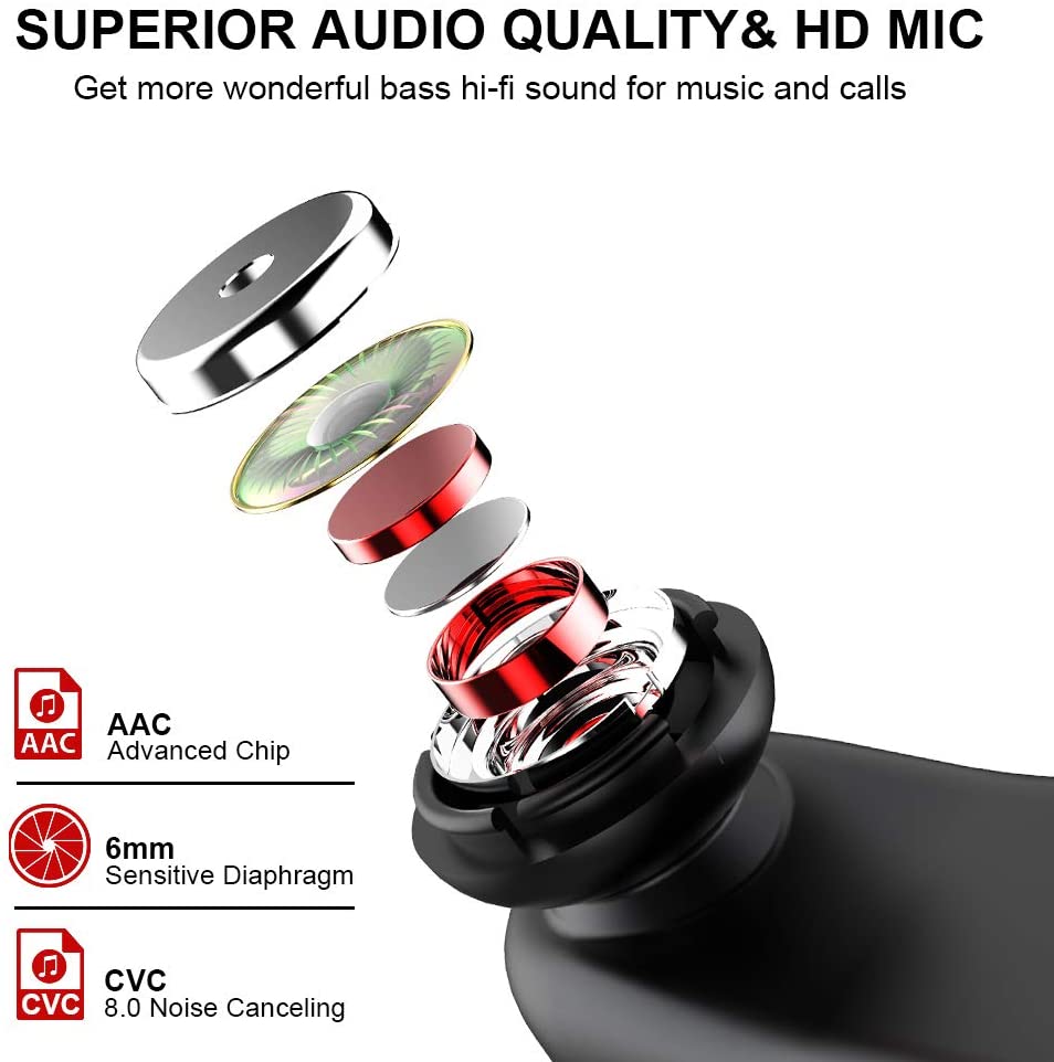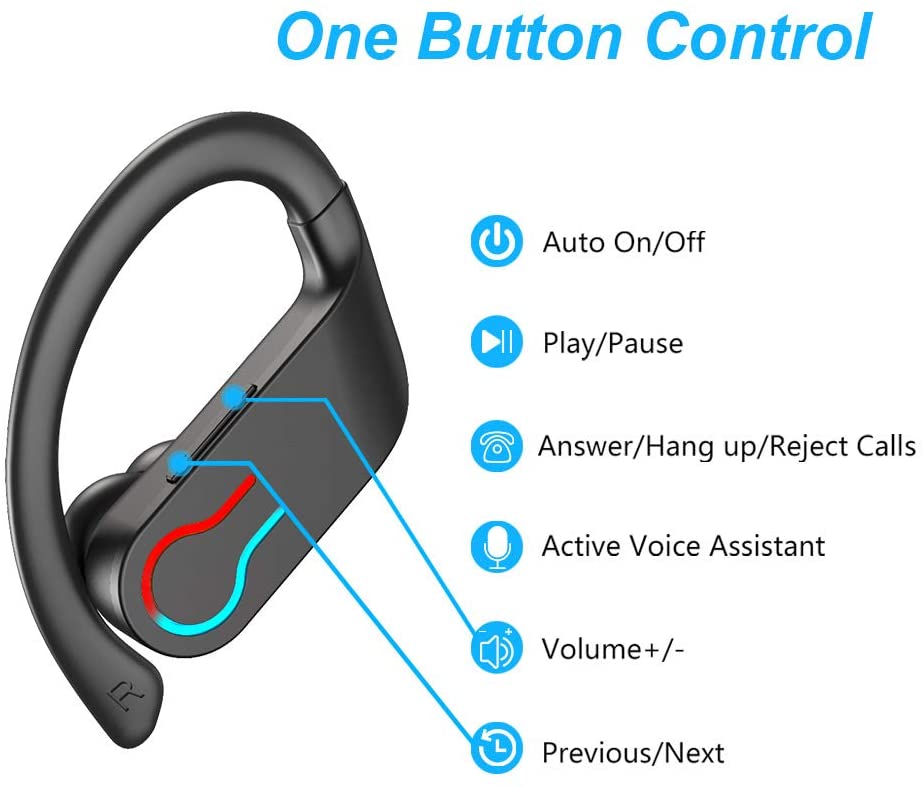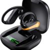 Donerton Wireless Earbuds, Bluetooth 5.1 Sport Headphones, 10Hours Single Playtime Earhooks Headset, Wireless Earphone 6D Stereo HiFi Sound Noise Cancelling for Working/Travel/Gym, Black Red