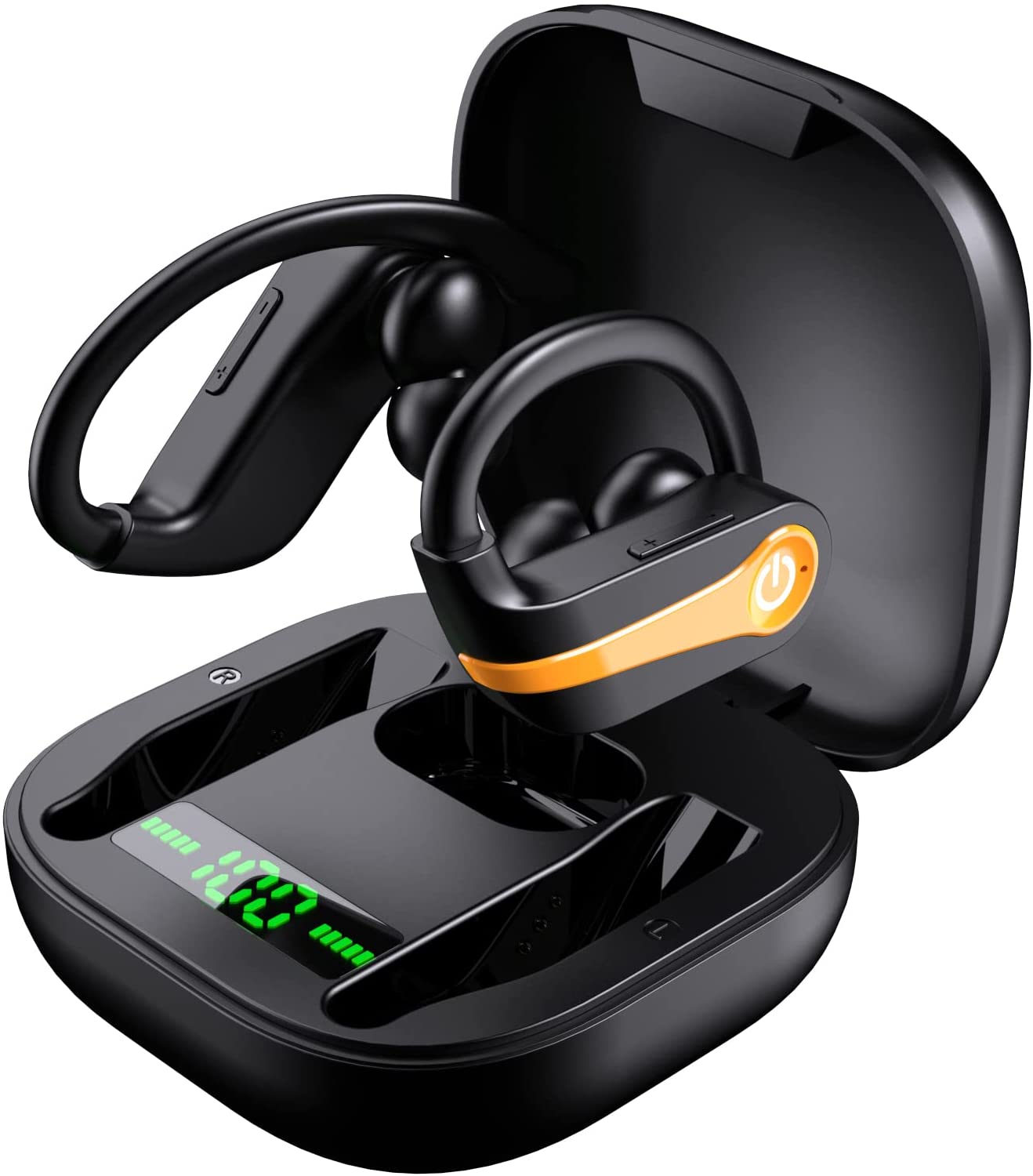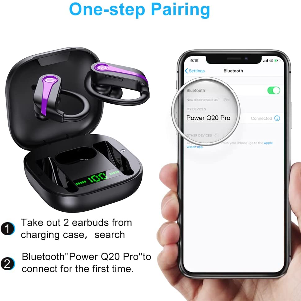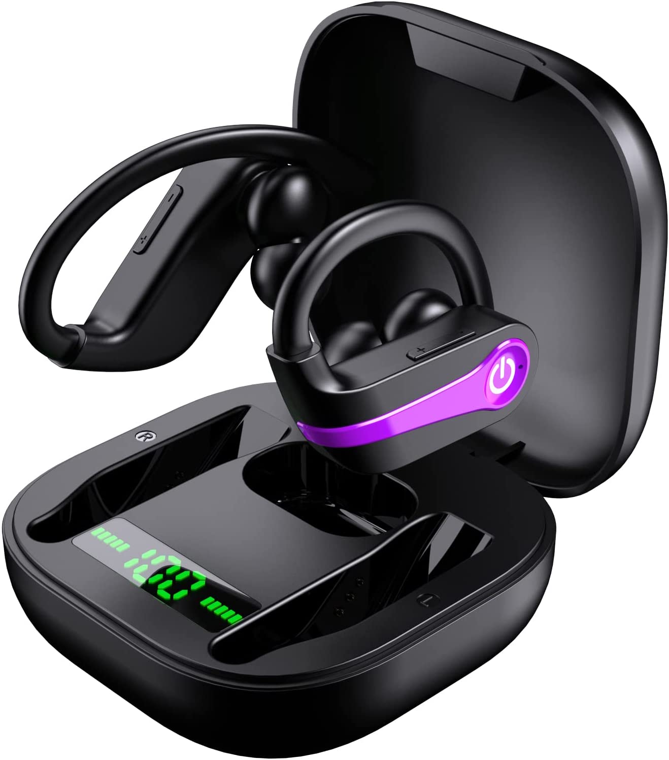 Donerton Wireless Earbuds, Bluetooth 5.1 Sport Headphones, 10Hours Single Playtime Earhooks Headset, Wireless Earphone 6D Stereo HiFi Sound Noise Cancelling for Working/Travel/Gym, Black Red