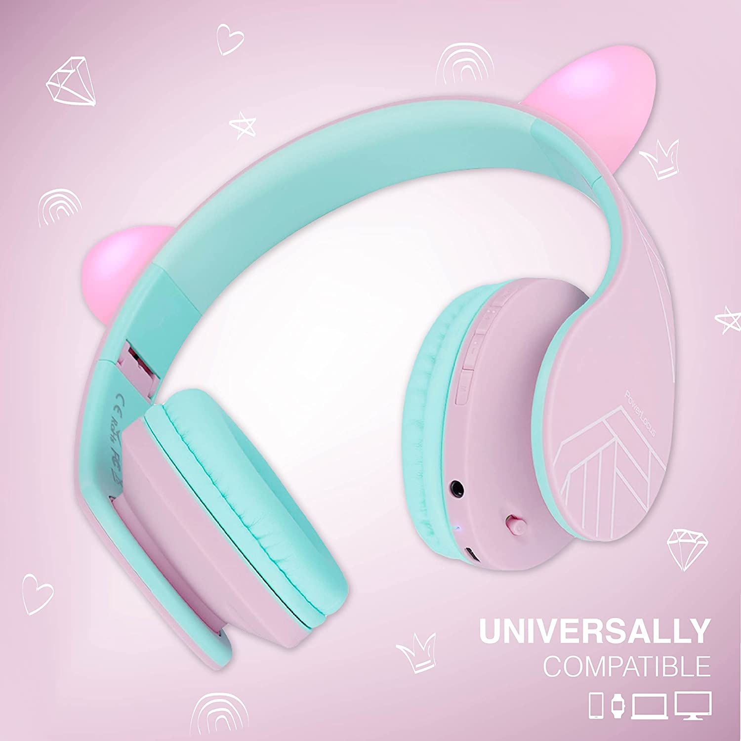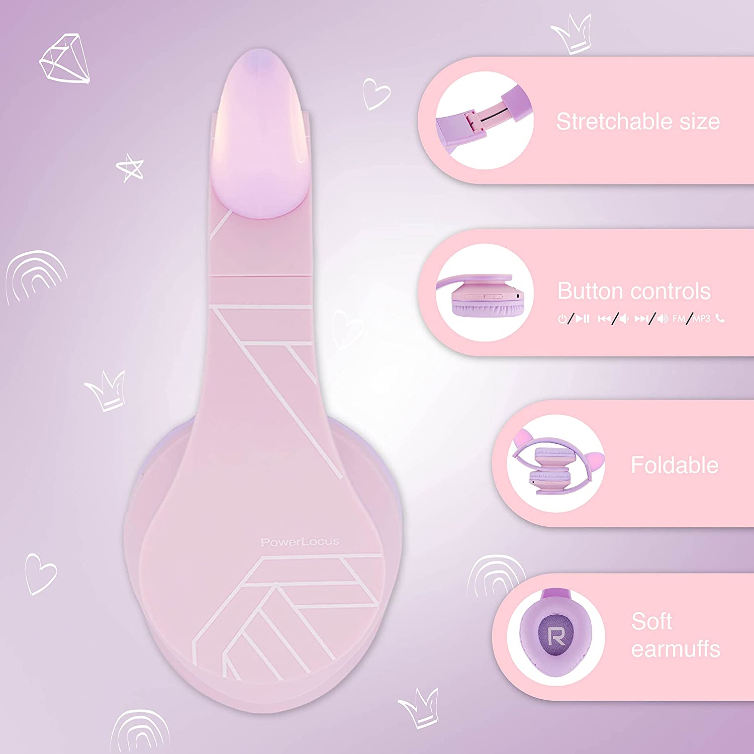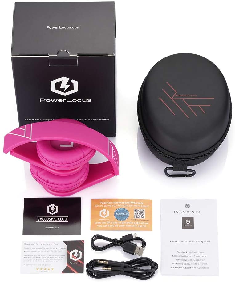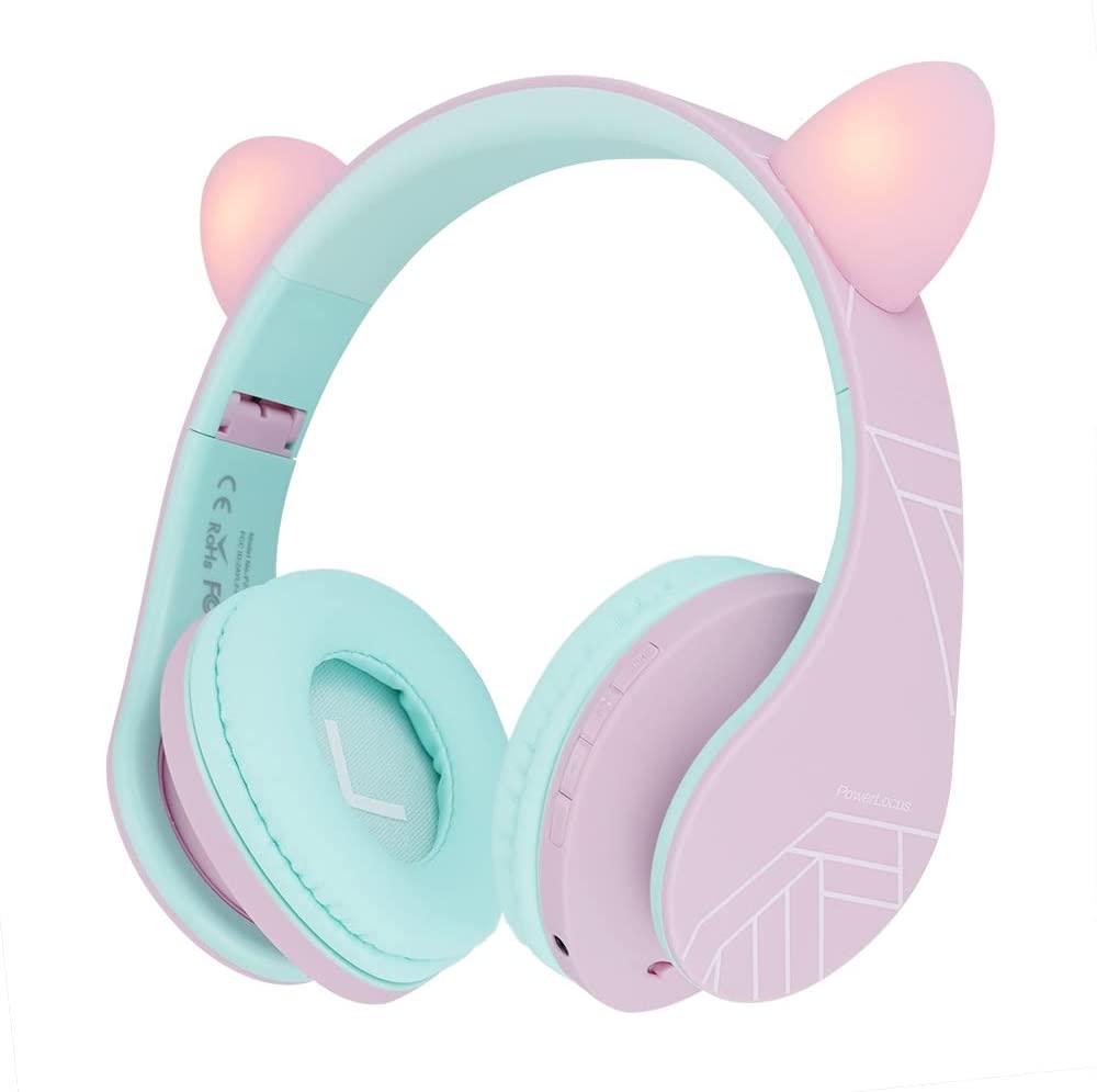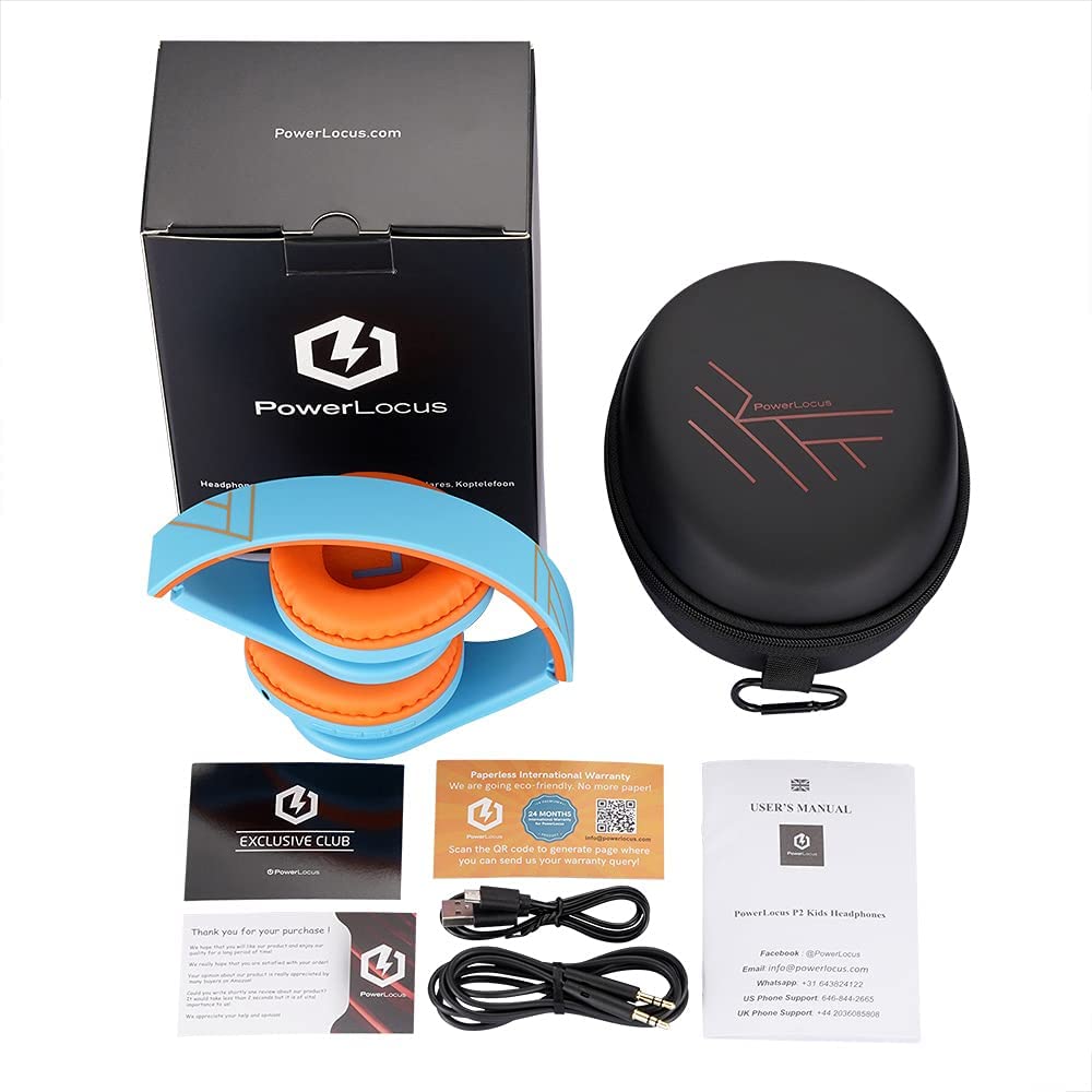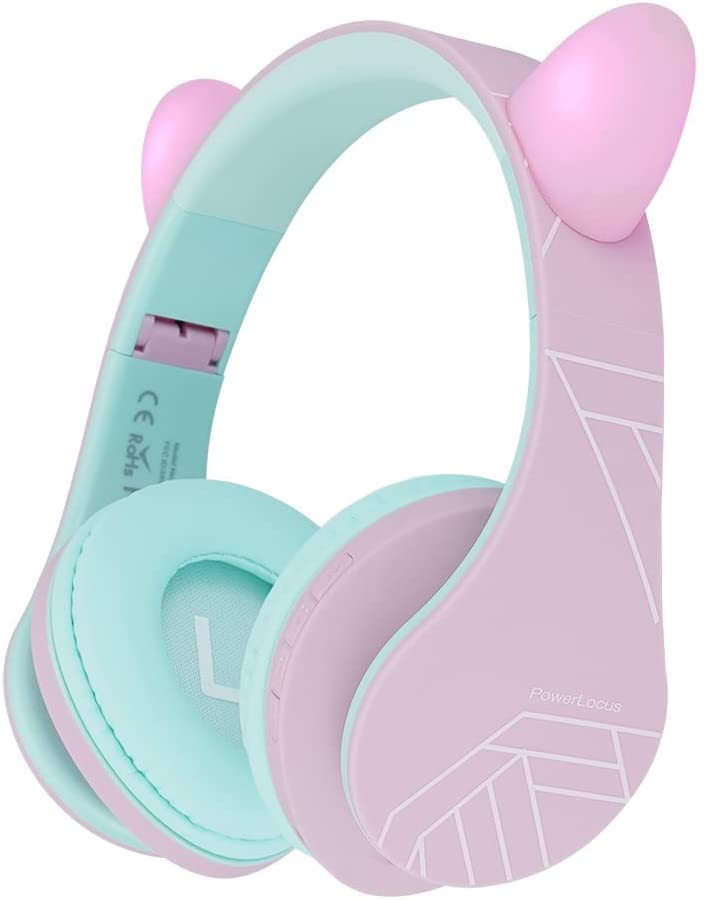 PowerLocus Kids Headphones Over-Ear, Bluetooth Wireless Headphones for Kids,with Microphone, Safe 85DB Volume Limited, Foldable with Carry Case, Audio Cable, Micro SD mode for Online Classes,PC,Phones