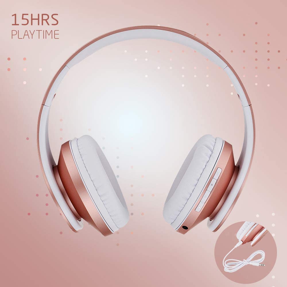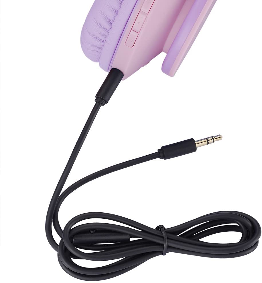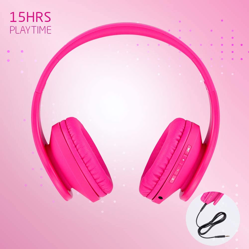 Kids Wireless Headphones, Boys Bluetooth Headset Adjustable Headband with Mic, Stereo Sound Childrens Bluetooth Headphones Over Ear for School Home, Travel (3.5mm Jack Audio Cable Included) (Pink)