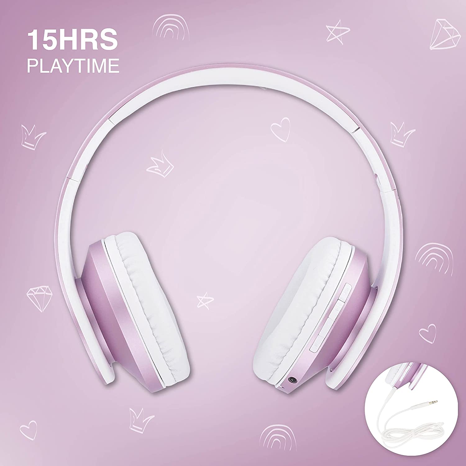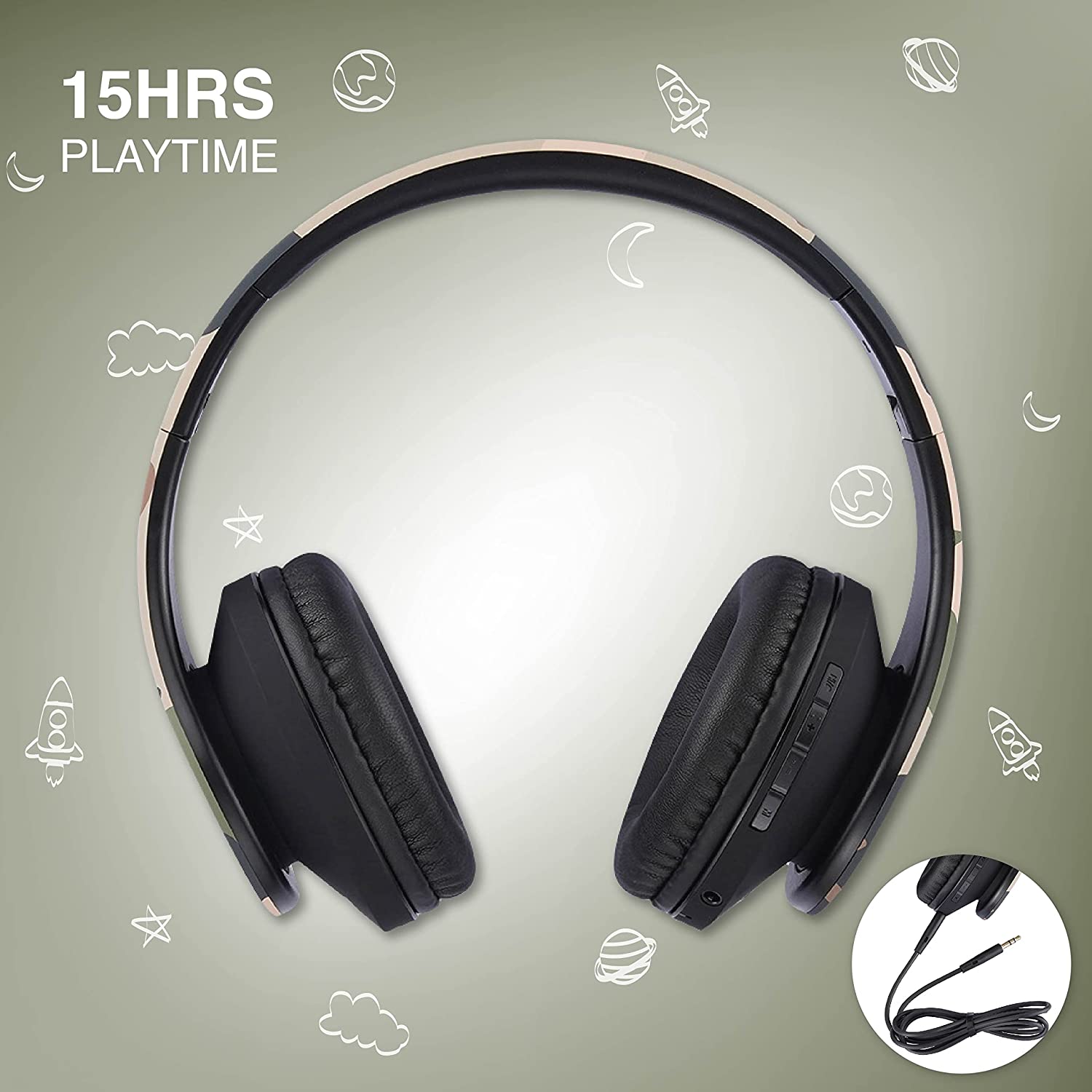 What makes these kids headphones to stand out? Huge Battery playtime – 15H Playtime and Limitless Cable mode