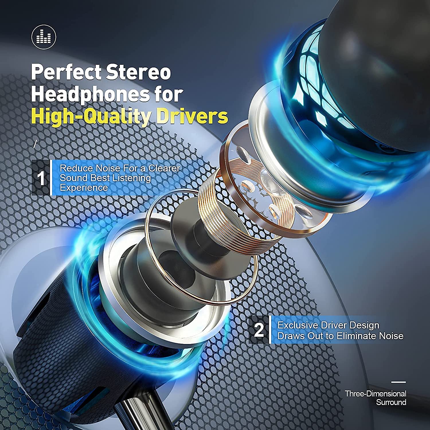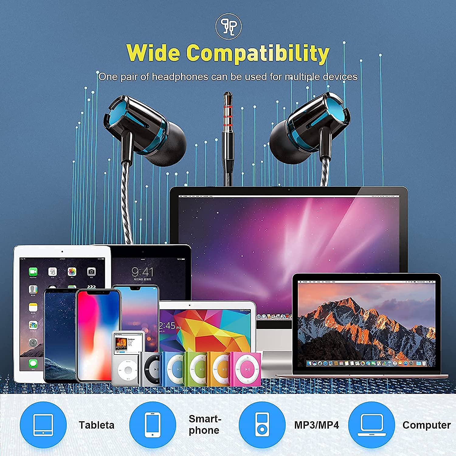 Wired Earbuds 5 Pack, Earbuds Headphones with Microphone, Earphones with Heavy Bass Stereo Noise Blocking, Compatible with iPhone and Android Devices, iPad, MP3, Fits All 3.5mm Interface Devices